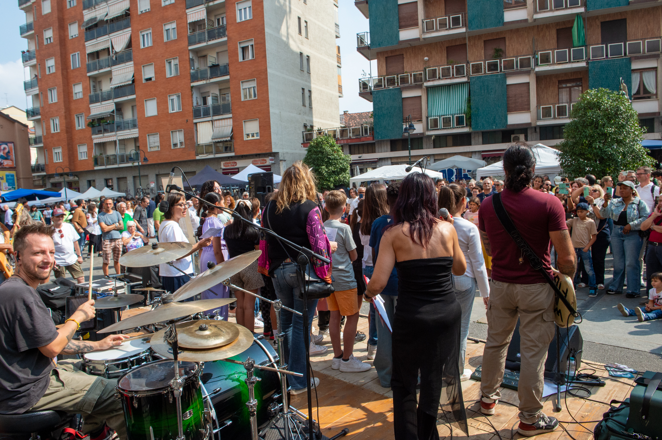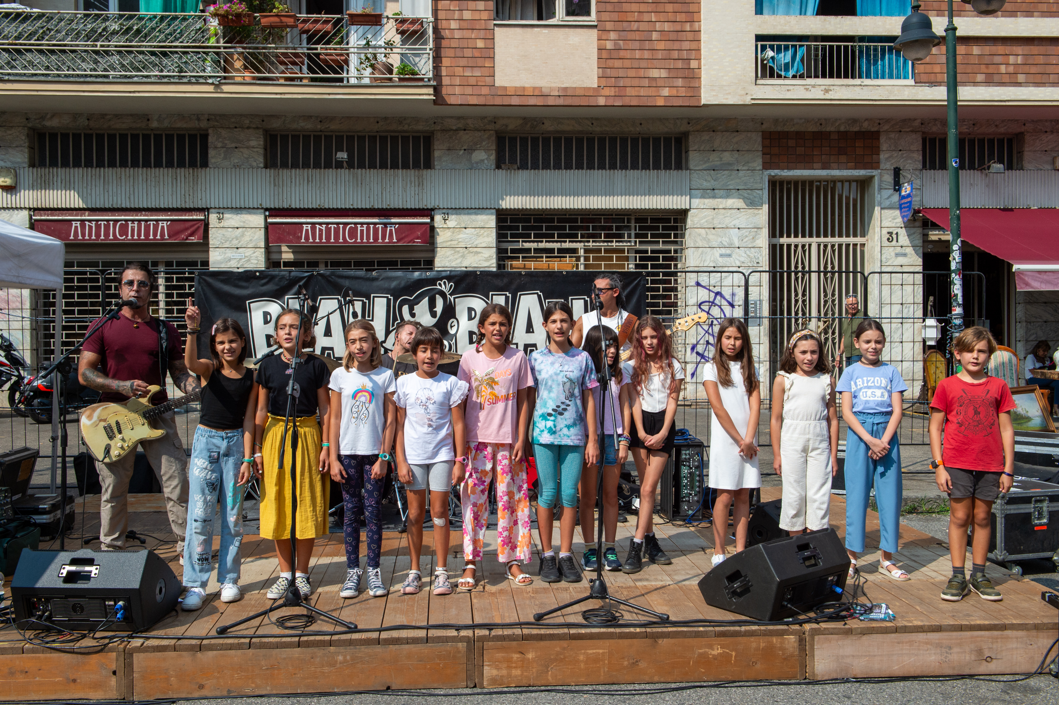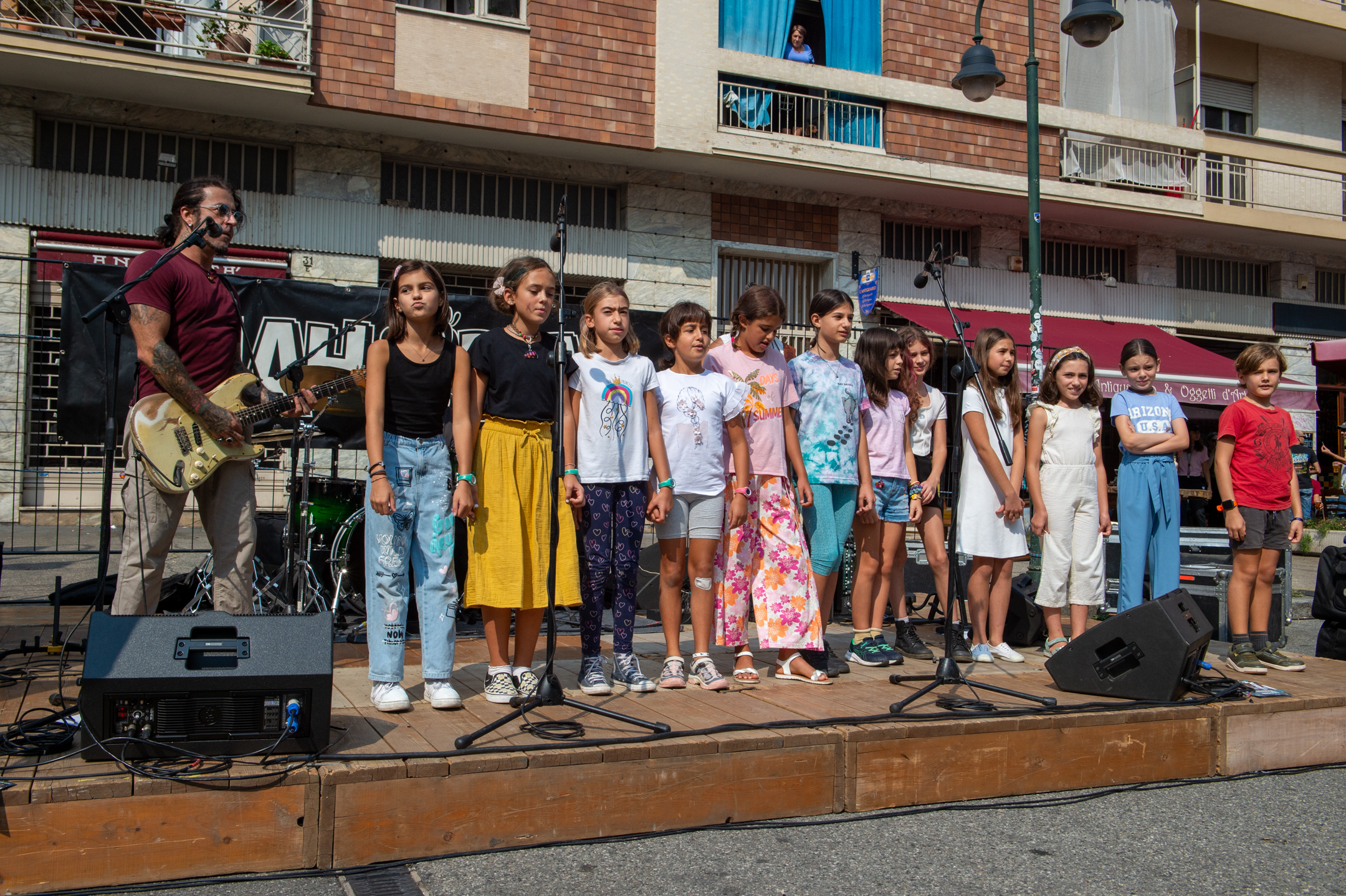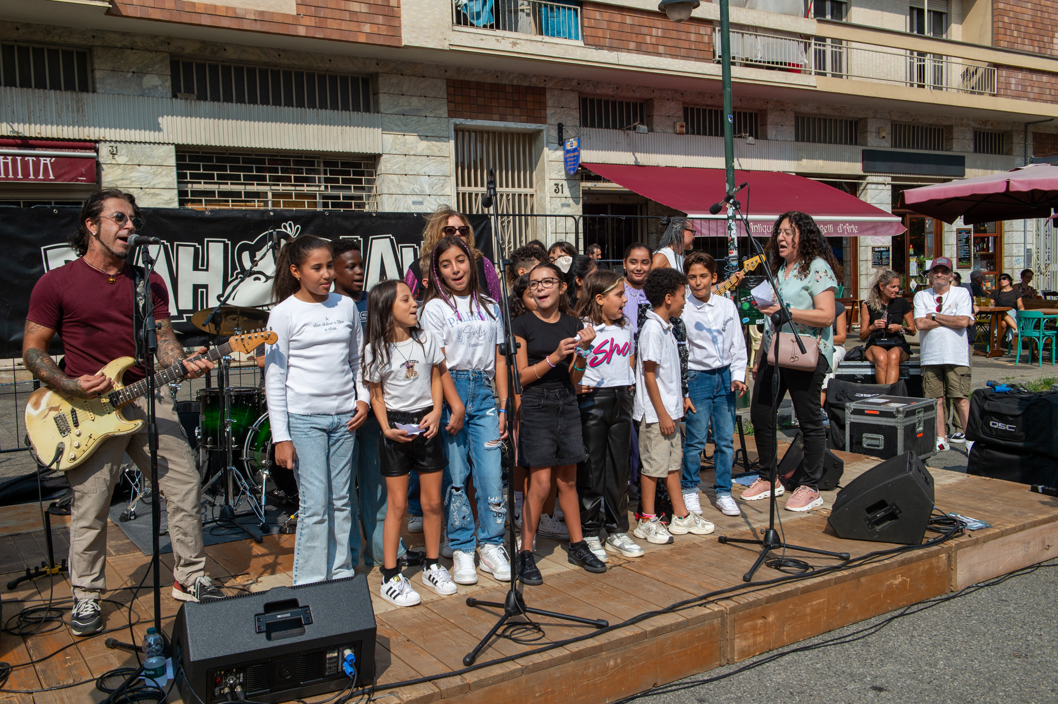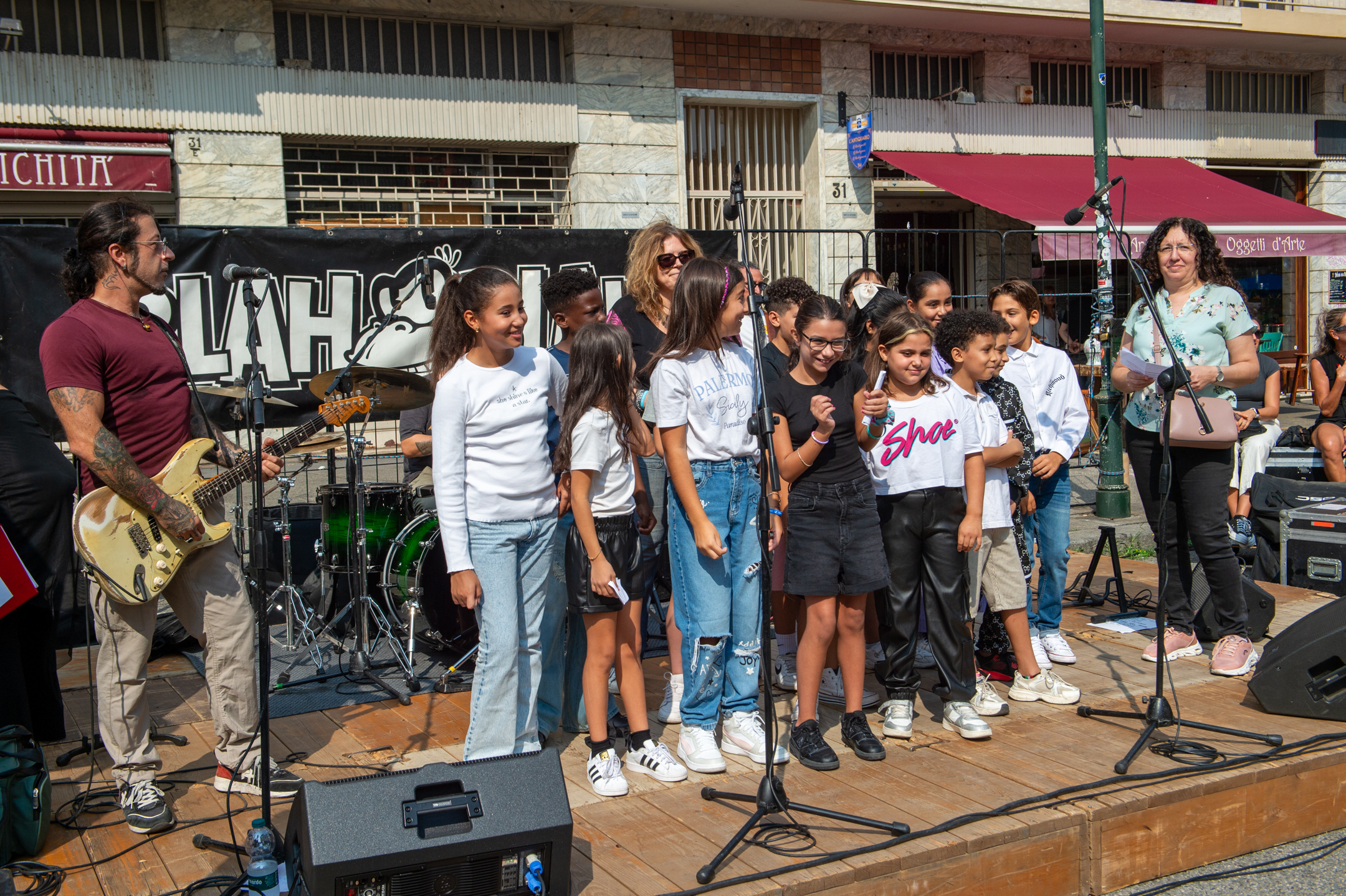 I bambini delle scuole che hanno aderito al progetto dei corsi di “musica creativa” ideati da Marchesin sono saliti sul palco per cantare le canzoni da loro create durante le ore di lezione musicale.