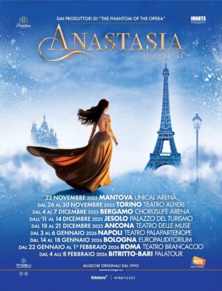 “ANASTASIA, il Musical” al Teatro Alfieri a Torino sino al 30 novembre, si afferma come il Musical Italiano dell’anno grazie ai continui sold out registrati durante la prima tournée 2024-2025 presso i maggiori teatri italiani. La pièce, definita dalla critica come il “Musical d’autore” ed ancora dal Corriere della Sera “il miglior musical dell’anno”, da Il Messaggero “un musical con scenografie mozzafiafo” e da La Stampa “impossibile non commuoversi”, portata in scena da un cast straordinario e diretta dal regista Federico Bellone, ha saputo conquistare il cuore di un pubblico ampio e variegato, testimoniato dai numeri record raggiunti nelle principali città italiane.