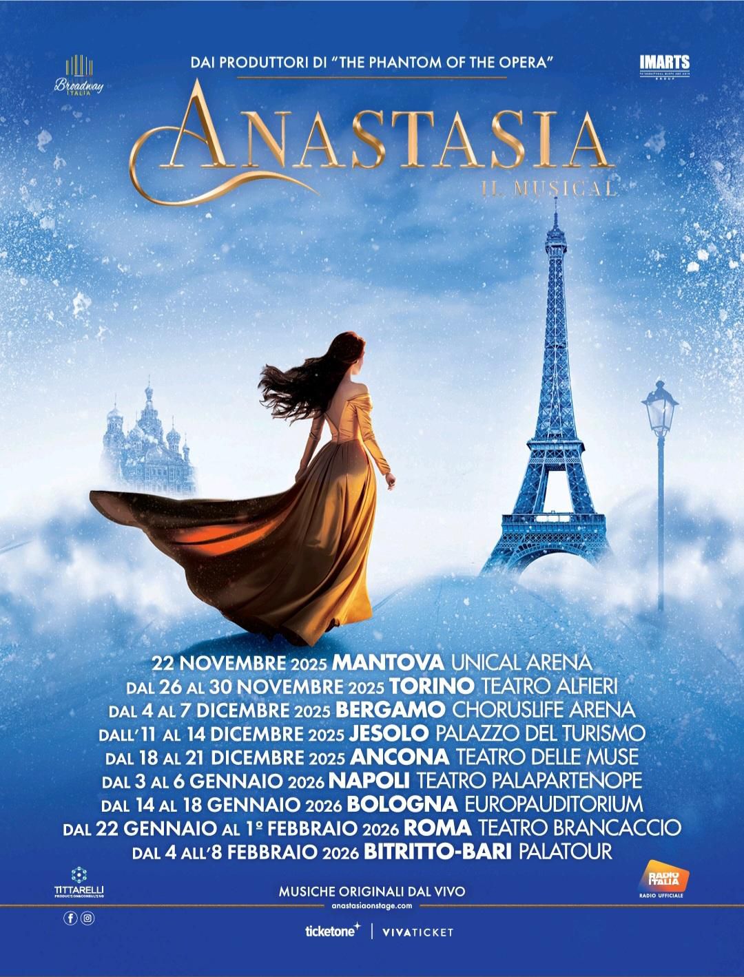 Broadway Italia e Master’s Voice (gruppo IMARTS), sono lieti di annunciare ANASTASIA il Musical nei maggiori teatri in Italia.
