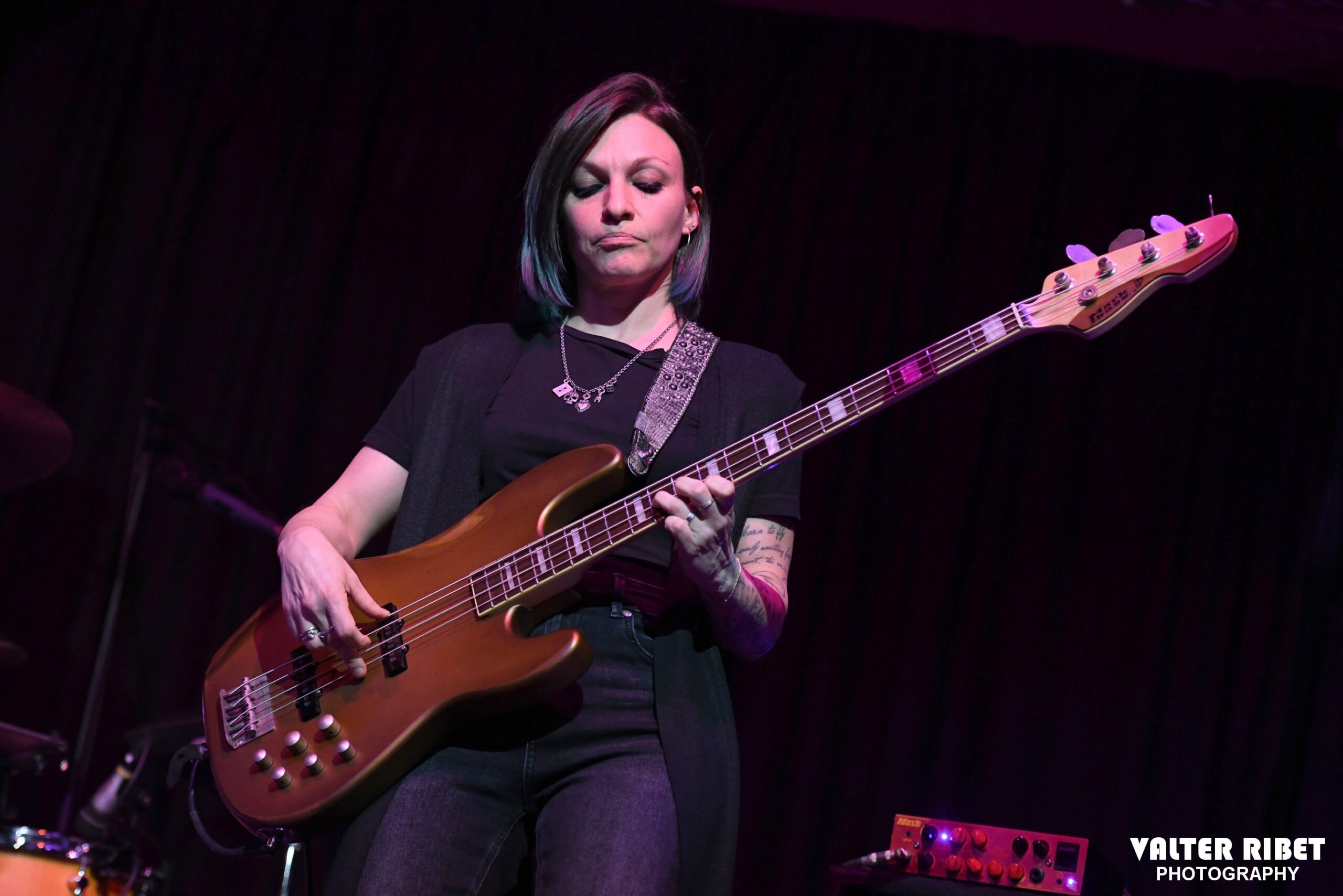 Paola Zadra è un’affermata bassista, vanta molte importanti collaborazioni con (per citarne alcuni) Francesco Baccini, Marco Masini, Red Canzian, Omar Pedrini, inoltre svolge attività didattica e dal 2015 è bassista ufficiale nella Band del Batterista Will Hunt (Evanescence, Vasco Rossi, Black Label Society) per il suo tour italiano.